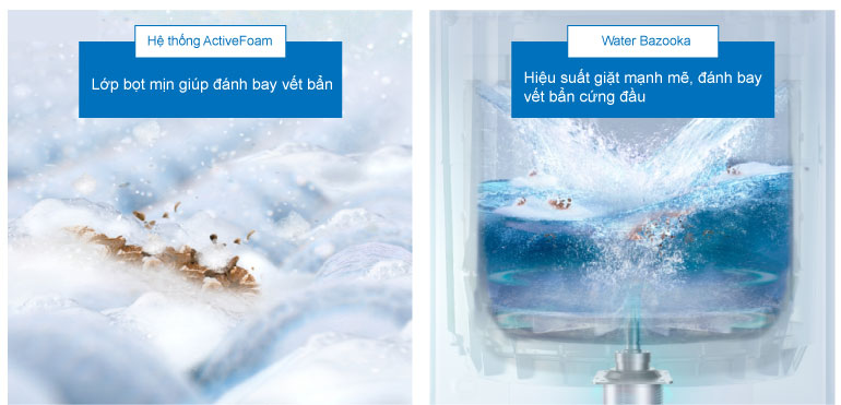 Hệ thống ActiveFoam tạo bọt siêu mịn, đậm đặc len lỏi sâu vào sợi vải để loại bỏ hoàn toàn bụi bẩn và kết quả là giúp vải sạch hơn.