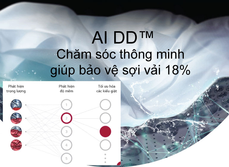 Giặt giũ thông minh hơn và sạch hơn với AI DD™ tối ưu hóa chuyển động giặt qua cảm biến tự động xác định chất liệu áo quần