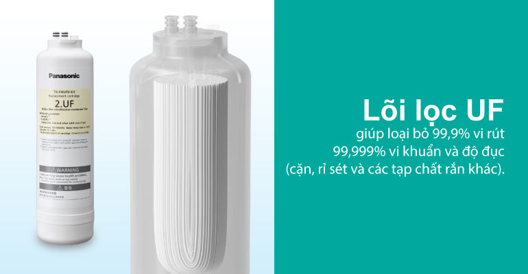 Bộ lọc màng siêu lọc sợi rỗng (UF) có kích thước lỗ danh nghĩa là 0,06 - 0,1 μm. Nước xuyên qua thành ngoài và đi đến tâm rỗng của từng sợi vật liệu dạng sợi, và các chất độc hại, vi khuẩn và thậm chí cả vi-rút sẽ bị giữ lại nhờ kích thước lỗ nhỏ của bộ lọc
