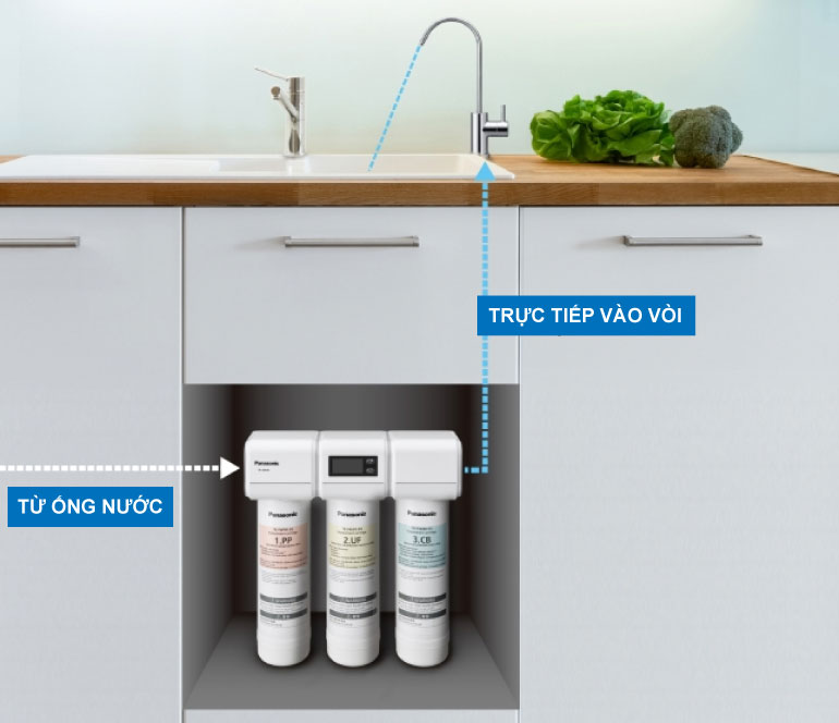 Ba lõi lọc khác nhau giúp loại bỏ hoàn toàn các chất độc hại. Nhờ màng UF, vi khuẩn và thậm chí cả vi-rút đều được loại bỏ. Các vật liệu lọc là 1. PP: Polypropylene bông nén 2. UF: Màng siêu lọc sợi rỗng 3. CB: Khối than hoạt tính nén