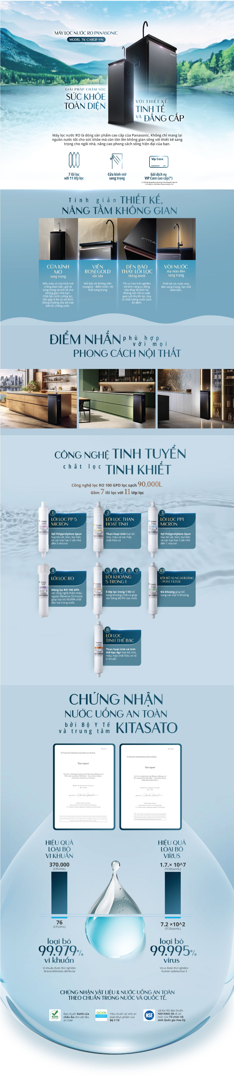 Với sự kết hợp giữa công nghệ tiên tiến, thiết kế hiện đại và chất lượng đỉnh cao, máy lọc nước RO Panasonic TK-CA813F-VN là sự đầu tư đáng giá cho sức khỏe của bạn và gia đình. Hãy chọn lựa sự an toàn và tinh khiết cho nước uống của bạn, hãy chọn Panasonic.