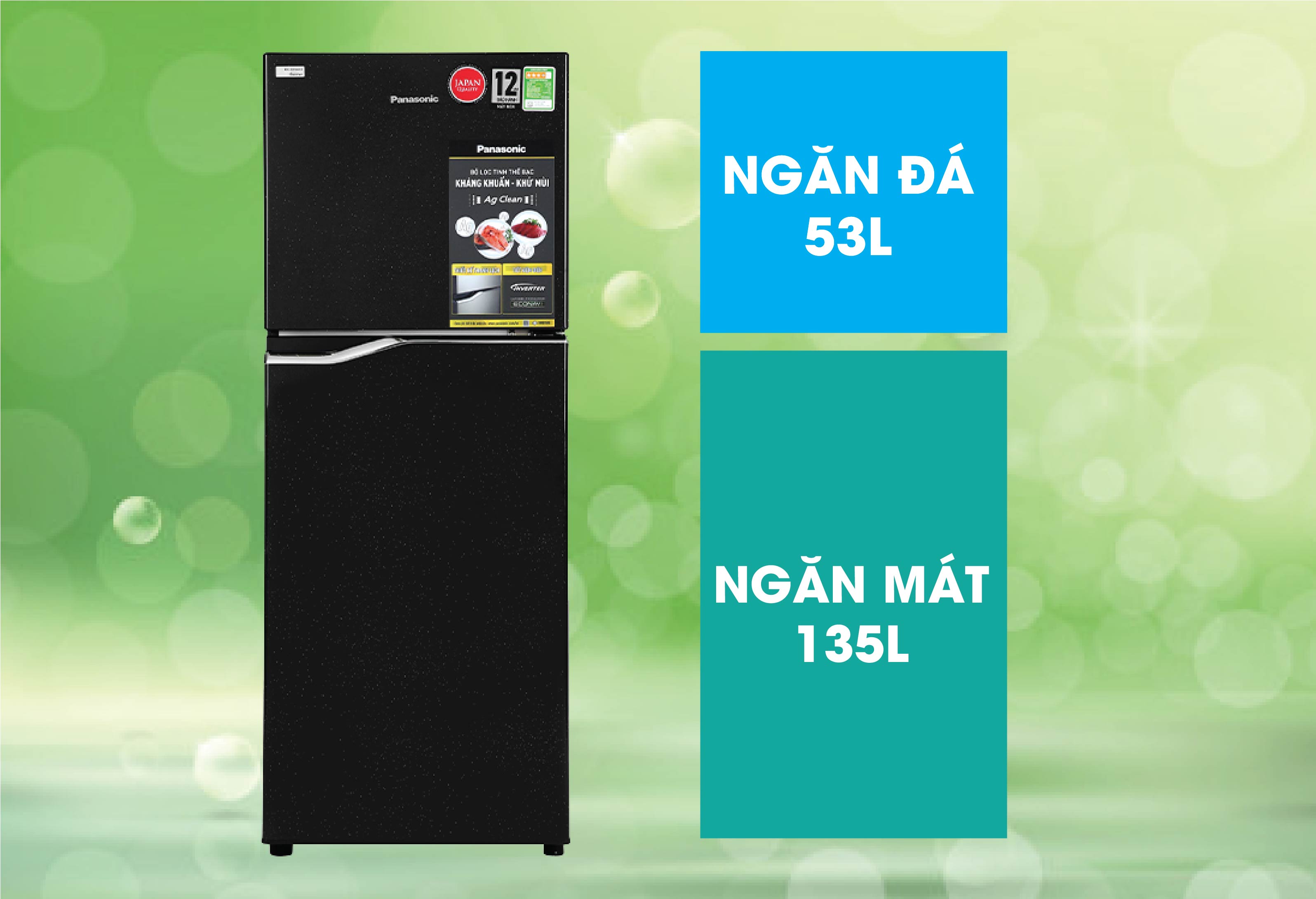 Tủ lạnh Panasonic Inverter NR-BA229PKVN sở hữu dung tích 188 lít, trong đó dung tích ngăn đá là 53 lít và dung tích ngăn mát là 135 lít