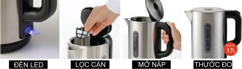 • Đèn LED báo nước đang đun và tựu tắt khi nước đun sôi