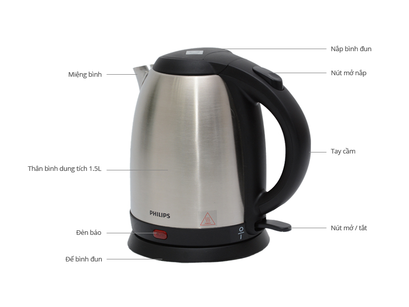 | Tính năng | • Ấm siêu tốc đun nước khô ráo, an toàn. • Có hệ thống tự động ngắt nguồn khi sôi. • Vỏ ấm siêu tốc được làm bằng inox, mẫu mã đẹp và lịch sự. |