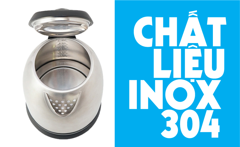 Thân bình được làm bằng chất liệu Inox 304 sáng bóng, có độ bền cao, giữ nhiệt tốt, an toàn