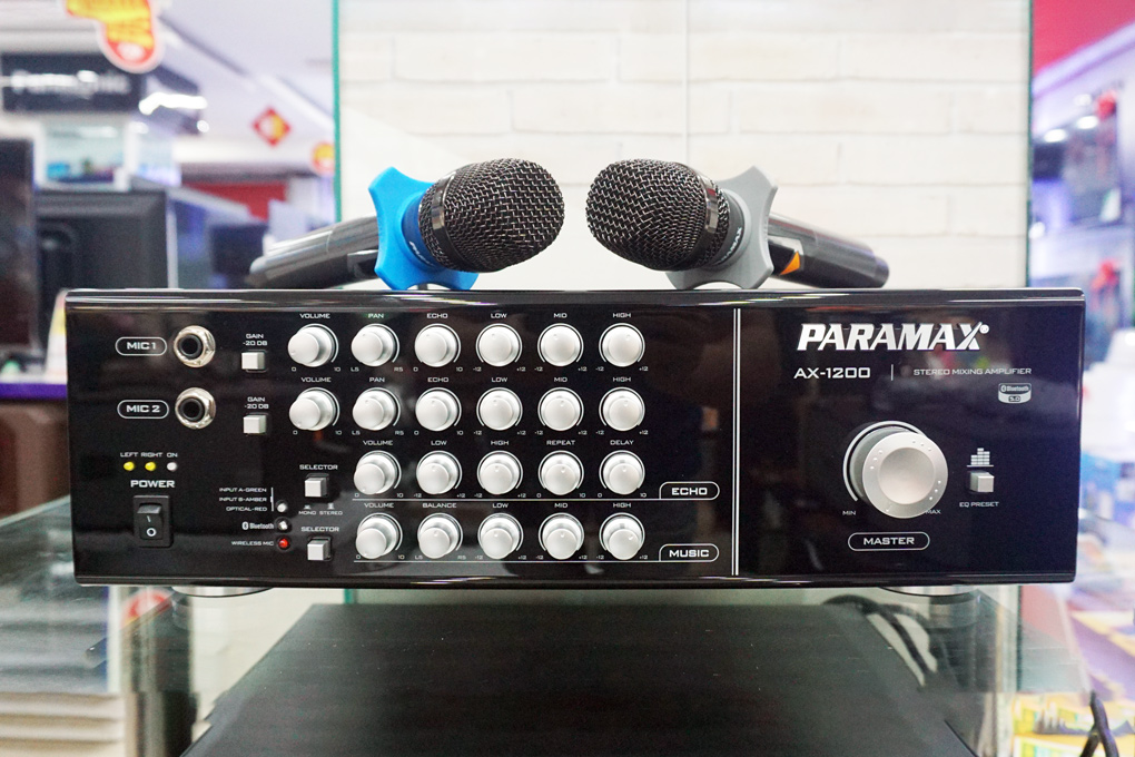 - Amply PARAMAX AX-1200 là bộ khuếch đại 2 kênh công suất lớn (500w R.M.S) cho khả năng xử lý và khôi phục tín hiệu trung thực