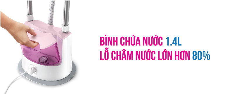 Lỗ châm nước của bàn ủi GC485 so với các mẫu ban ủi trước đó thì lớn hơn 80% giúp châm nước và lau rửa dễ dàng hơn, đảm bảo vệ sinh ngăn chứa tốt hơn.