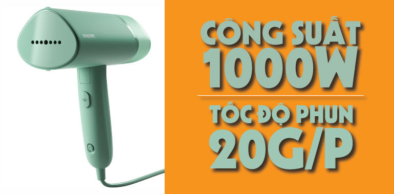 Máy có công suất 1000w kèm tốc độ hơi phun liên tục lên đến 20g/p giúp là nhanh chóng