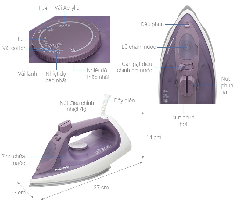 | Dây xoay 360° | Luồng hơi nước mạnh mẽ từ toàn bộ mặt đế với rãnh chữ U |