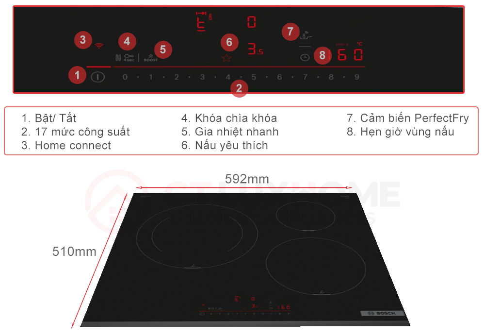 | Kích thước bếp (CxRxS) | 51 x 592 x 522 mm |