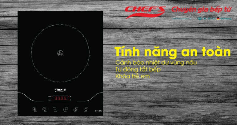 Chefs EH-IH22A mang đến cảm giác an toàn, yên tâm hơn khi sử dụng với khả năng cảnh báo nhiệt dư vùng nấu sau khi sử dụng, tự động tắt bếp sau 2h nếu để quên và khóa an toàn đối với trẻ nhỏ