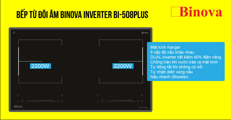 Điểm đặc biệt của Binova BI-508Plus chính là công nghệ inverter tiên tiến, giúp kiểm soát chính xác nhiệt độ nấu và tiết kiệm năng lượng. Công nghệ này cung cấp hiệu suất nấu ổn định và đồng đều, từ đó giữ cho thực phẩm được chế biến hoàn hảo sau mỗi lần nấu