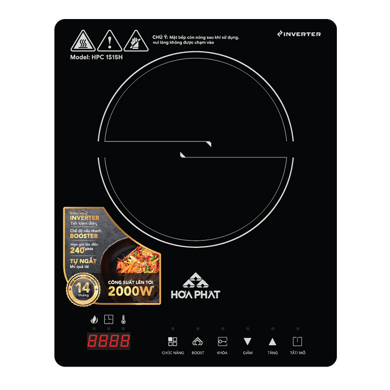 | Cảnh báo và tự động tắt khi không có nồi | Bảo vệ quá nhiệt/quá tải, điện áp thấp/cao |