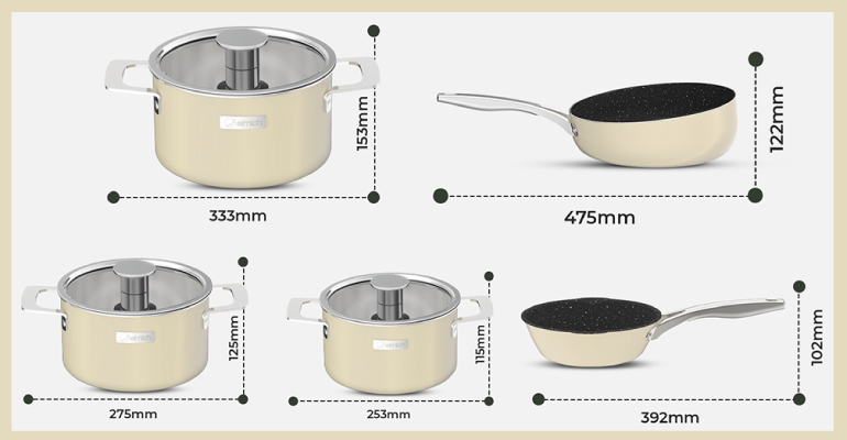 • Kích thước Nồi 16, 18, 22cm và chảo 20, 26cm