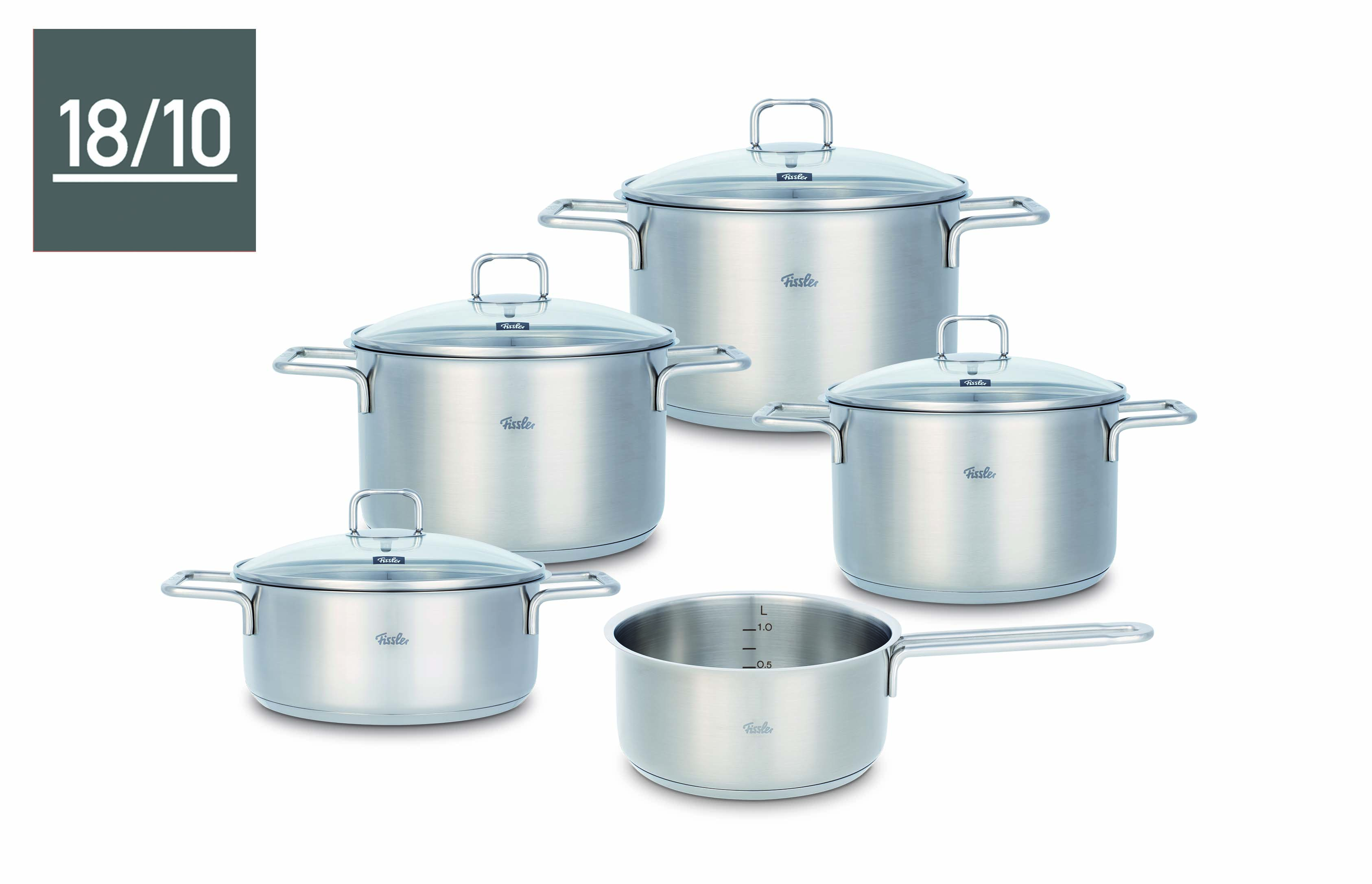 Thép 18/10 được ứng dụng chủ yếu trong lĩnh vực y tế và vũ trụ không gian. Sử dụng thép không gỉ 18/10 theo đúng tiêu chuẩn Đức giúp thân nồi inox Fissler Hamburg chắc chắn, bền bỉ, truyền và giữ nhiệt tốt, đẹp trong thời gian dài.