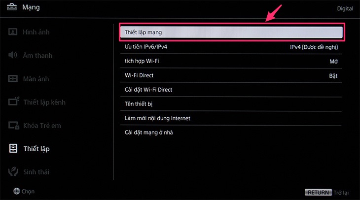 Bước 4. Tiếp tục chọn Thiết lập mạng.