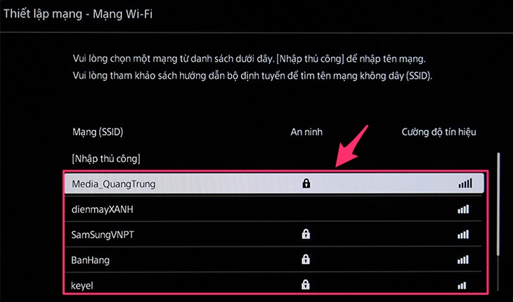 Bước 7. Chọn mạng Wifi của bạn để tivi kết nối