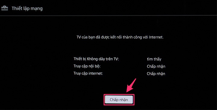 Bước 9. Chọn Chấp nhận để hoàn thành việc kết nối mạng cho tivi.