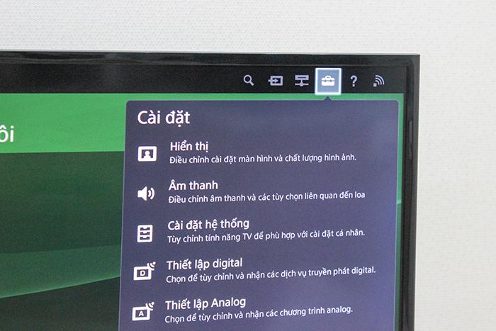 Bước 1: Dùng remote chọn mục Cài đặt ở góc trên phía phải màn hình.