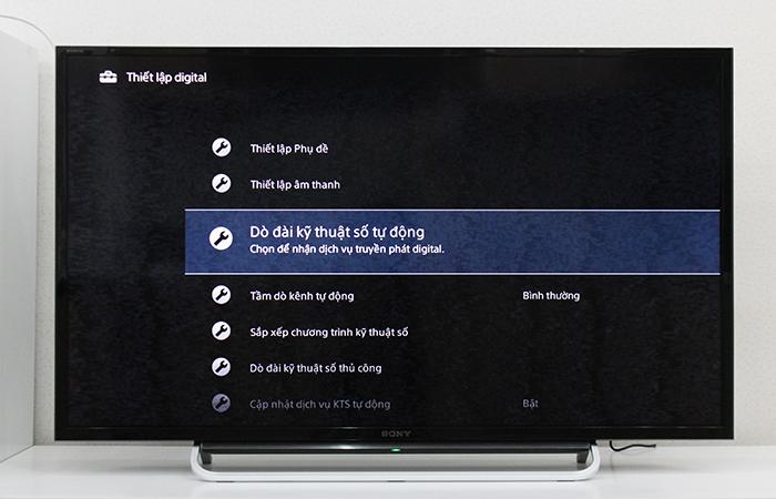 Bước 3: Trong mục Thiết lập digital sẽ hiển thị các mục. Ta chọn mục Dò đài kỹ thuật số tự động. Sau đó chọn vào đồng ý khi tivi hỏi: Bạn có muốn bắt đầu dò kênh tự động không? Sau đó bạn cần chờ đợi một khoảng thời gian để tivi tiến hành dò kênh. Khi đã dò thành công bạn sẽ dễ dàng xem được những nội dung KTS mà mình yêu thích.