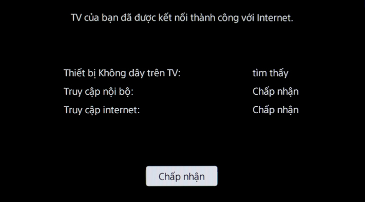Khi hoàn tất kết nối, tivi sẽ thông báo và bạn có thể bắt đầu truy cập mạng internet, tìm kiếm những nội dung yêu thích.