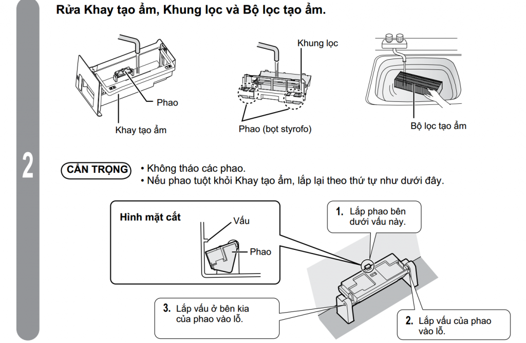 Bạn có thể tự mình tháo lắp để vệ sinh máy lọc, rửa khay tạo ẩm, khung lọc và bộ tạo ẩm của máy để nâng cao hiệu quả hoạt động.