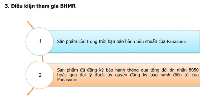 • Sản phẩm đã đăng ký bảo hành thông qua tổng đài tin nhắn 8050 hoặc qua đại lý được ủy quyền đăng ký bảo hành điện tử của Panasonic.