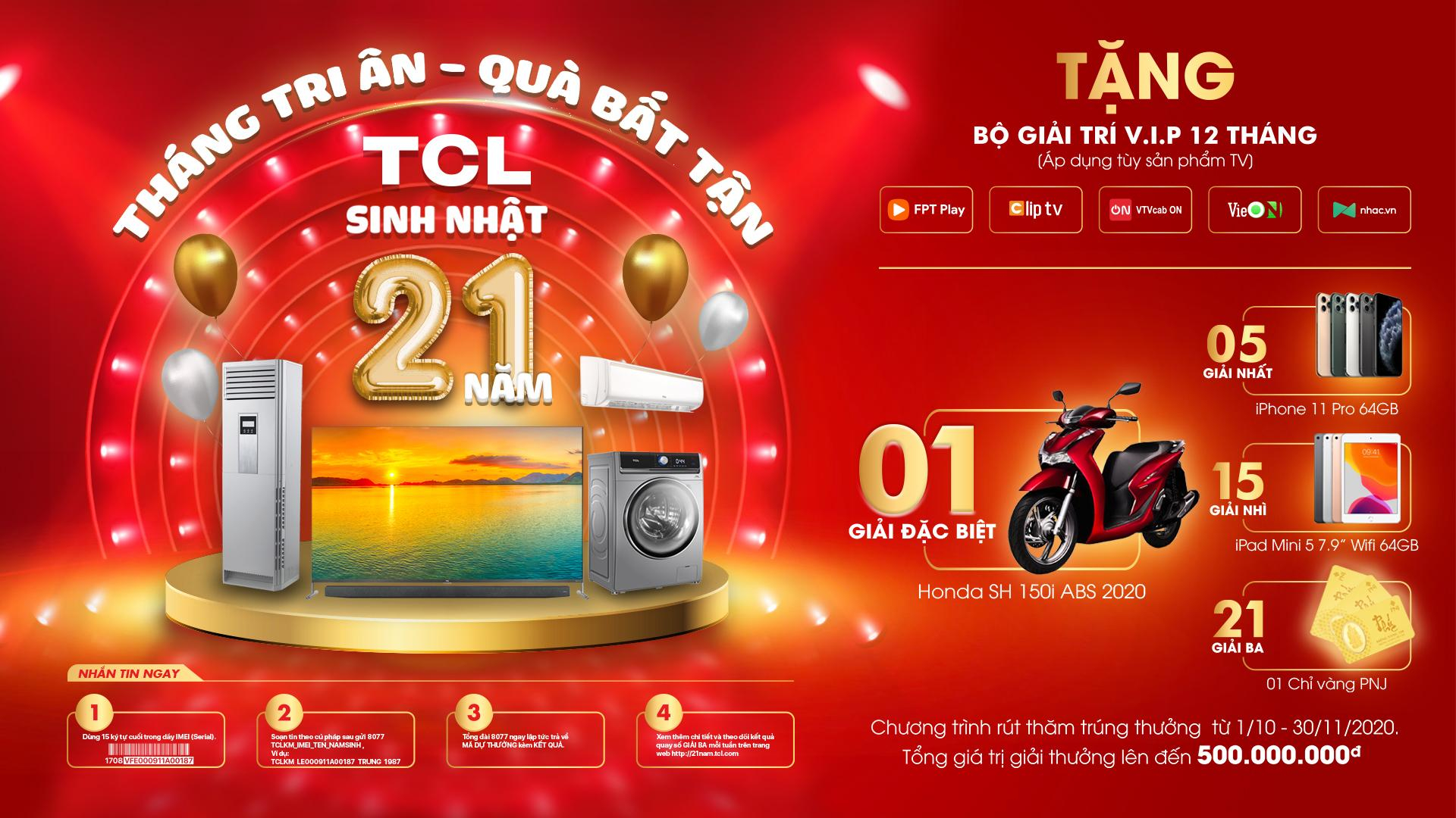 CHƯƠNG TRÌNH RÚT THĂM TRÚNG THƯỞNG "THÁNG TRI ÂN - QUÀ BẤT TẬN TCL SINH NHẬT 21 NĂM"
