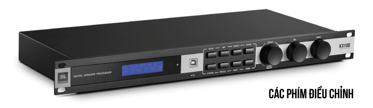 Thiết bị có thể lưu tối đa 10 cài đặt trước, dễ dàng cài đặt, chức năng Echo, Reverb, mixer karaoke JBL KX180 có khả năng giả lập tiếng rung họng cũng như tái tạo cho âm thanh