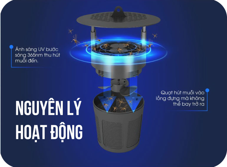 Với thiết kế thông minh, đèn bắt muỗi DBM01 ngăn chặn hiệu quả muỗi bay ngược trở ra khỏi thiết bị. Kết hợp giữa ánh sáng UV và quạt hút, muỗi không có cơ hội để thoát ra khỏi khu vực đã bị thu hút.