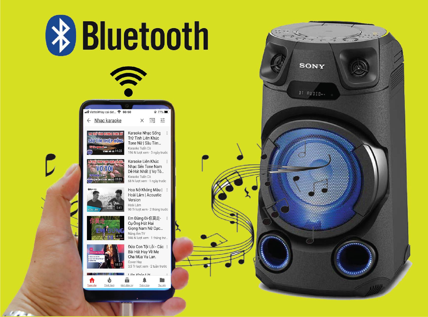 Loa Sony MHC-V13 kết nối không dây dàn âm thanh đến điện thoại với NFC và Bluetooth