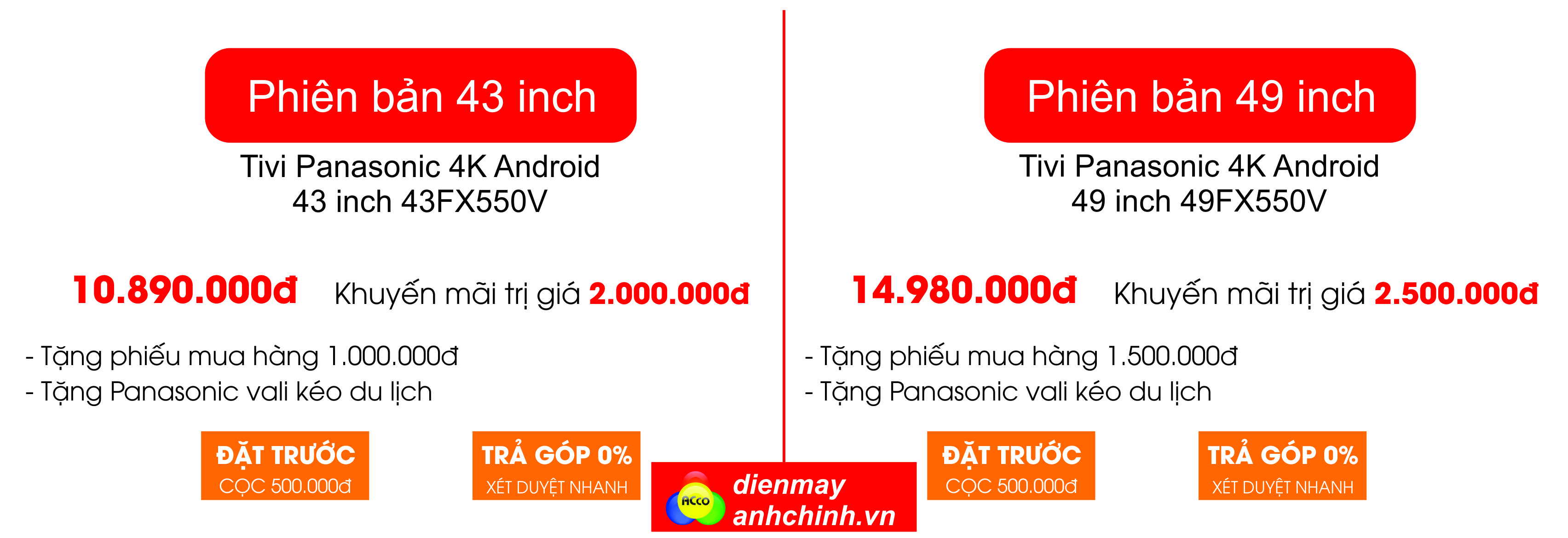150 suất đặt trước tivi Panasonic Android 8.0 4K 43FX550V và 49FX550V đầu tiên tại Việt nam để có cơ hội nhận được nhiều phần quà hấp dẫn.