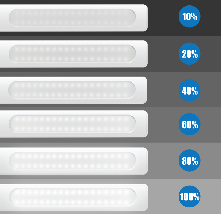 Bạn hoàn toàn có thể điều chỉnh độ sáng theo nhu cầu sử dụng như đọc sách(100%), thư giãn và đi vào giấc ngủ (10%), tạo không khí thoải mái, nhẹ nhàng, giảm căng thẳng(40%)