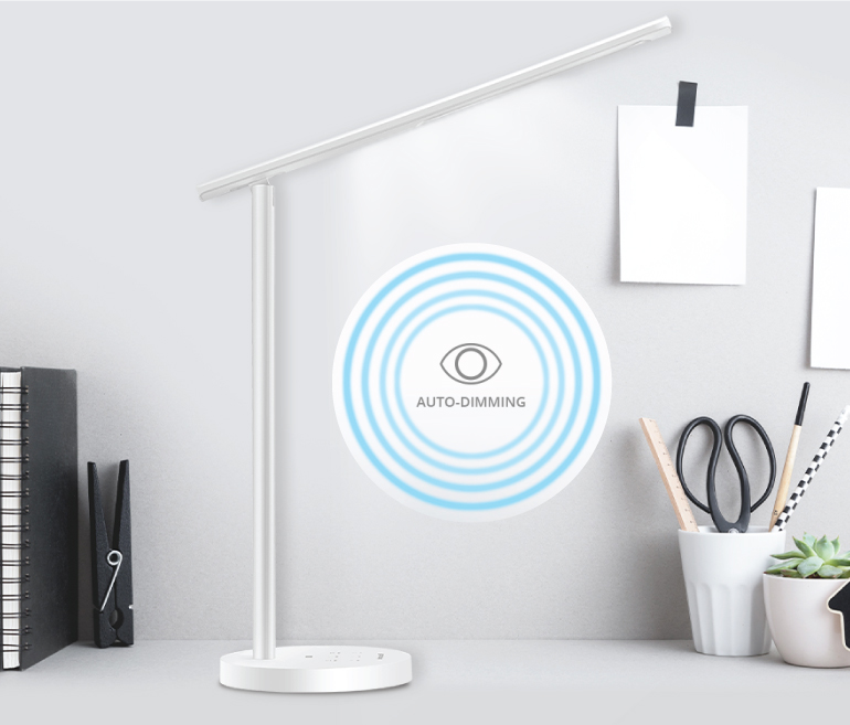 Đèn bàn Panasonic này có thêm chức năng tự động điều chỉnh cường độ sáng nhờ cảm biến nhận diện không gian môi trường xung quanh để đưa ra ánh sáng phù hợp