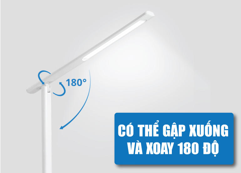 Thiết kế thông minh với đèn có thể gấp xuống và xoay 180 độ giúp cho bạn có thể tự do điều chỉnh hướng sáng theo mục đích sử dụng