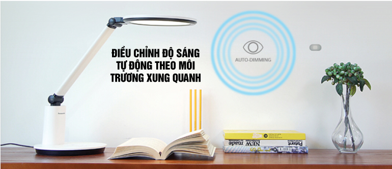 Đèn bàn Panasonic này có thêm chức năng tự động điều chỉnh cường độ sáng nhờ cảm biến nhận diện không gian môi trường xung quanh để đưa ra ánh sáng phù hợp