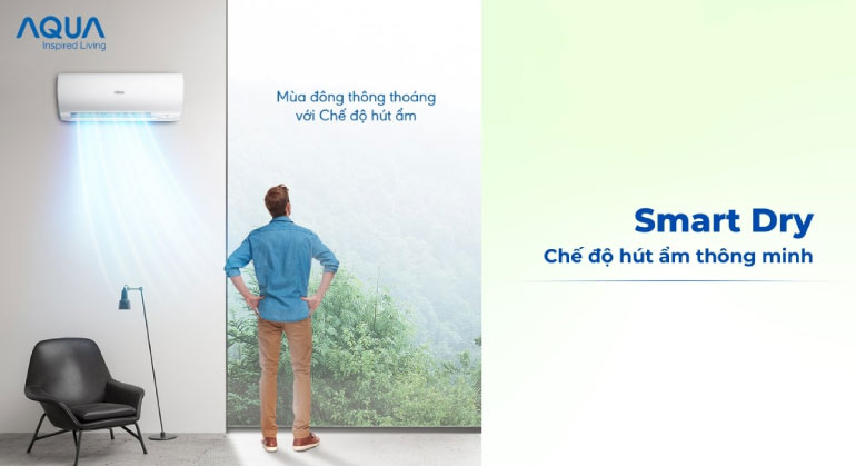 Smart Dry là chức năng cân bằng độ ẩm thông minh được trang bị trên một số dòng máy điều hòa Aqua. Chức năng này giúp tự động điều chỉnh độ ẩm trong phòng, mang đến cho bạn cảm giác thoải mái nhất.