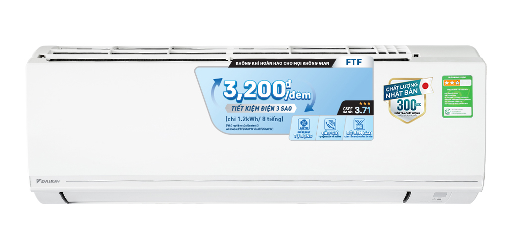 Nhà sản xuất điều hòa Nhật Bản sử dụng những linh kiện và vật liệu tối ưu hơn cho chiếc điều hòa Daikin 9000btu. Dù không sử dụng công nghệ inverter nhưng vẫn mang lại hiệu quả hoạt động tối ưu cho máy khi chỉ số hiệu suất năng lượng CSPF đạt chuẩn 3 sao (tương đương giảm 20% chi phí điện năng) không hề thua kém các dòng máy inverter của các thương hiệu khác.