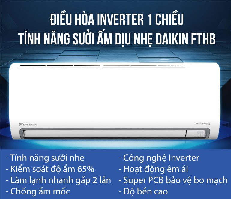 Khác biệt của điều hòa FTHB nằm ở khả năng sưởi ấm dịu nhẹ, mang đến hơi ấm dễ chịu trong những ngày se lạnh, với chế độ sưởi nhẹ hoạt động hiệu quả ở nơi có nhiệt độ ngoài trời từ 7°C trở lên. Phù hợp cho vùng Bắc Trung Bộ, Đồng bằng sông Hồng và các khu vực có nhiệt độ thấp nhất không quá 7oC