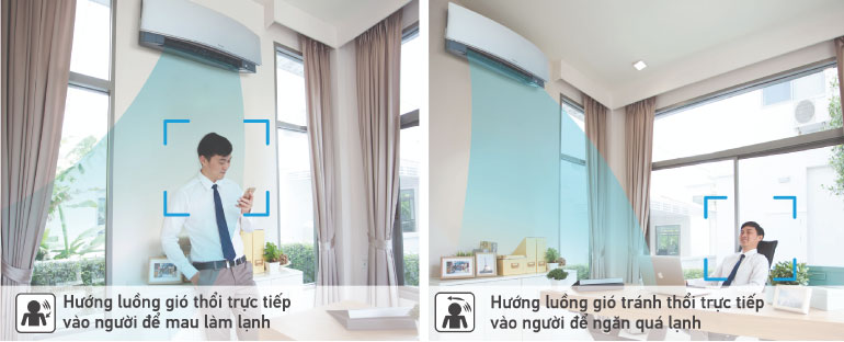 Chức năng hạn chế luồng gió thổi trực tiếp vào cơ thể người. Để ngăn luồng gió này, cánh đảo gió sẽ chuyển hướng lên trên trong chế độ làm lạnh và hướng xuống dưới trong chế độ sưởi.