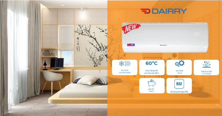 Điều hòa Dairry sử dụng môi chất lạnh R32 đây là dòng gas mới nhất trên thị trường, thân thiện với môi trường, không làm thủng tầng Ozon, an toàn, làm lạnh nhanh, tiết kiệm điện năng. Khi sử dụng Gas R32 là bạn đã góp một phẩn nhỏ để bảo vệ môi trường