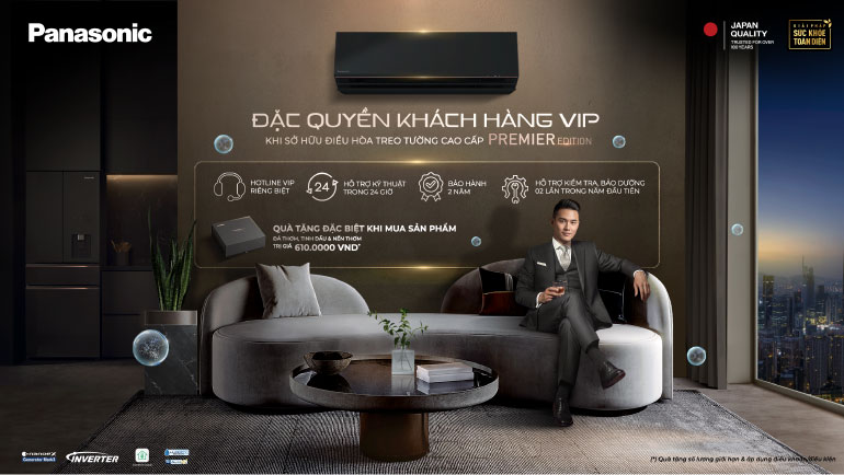 Dòng điều hòa Panasonic Premier Edition AU (BKH-8) “thổi hồn” vào mọi không gian với cảm giác thoải mái vượt trội. Thiết kế sắc đen sang trọng và hiện đại, tinh tế hài hòa với mọi phong cách nội thất. Đèn báo Chất Lượng Không Khí hiển thị theo thời gian thực, giúp bạn nhận biết không khí xung quanh, đồng thời công nghệ nanoe™ X giúp lọc sạch và khử mùi hiệu quả. Nhờ tích hợp Wi-Fi, bạn có thể điều khiển điều hòa mọi lúc, mọi nơi qua ứng dụng Panasonic Comfort Cloud. Tận hưởng khả năng làm mát nhanh chóng với iAUTO-X và độ ẩm cân bằng nhờ cảm biến độ ẩm được tích hợp. Trải nghiệm sự thoải mái nâng tầm cùng AEROWINGS 2.0 với luồng gió được tối ưu. Hiệu quả sử dụng điện năng tối ưu nhờ các công nghệ thông minh như Chế độ ECO tích hợp trí tuệ nhân tạo (A.I.) và công nghệ Inverter – giúp tiết kiệm năng lượng và giảm chi phí. Trải nghiệm sự hòa quyện hoàn hảo giữa sự đơn giản, chất lượng vượt trội và sống khỏe mỗi ngày.