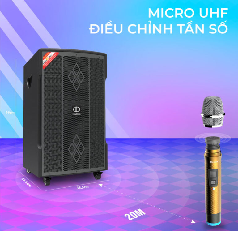 | Phụ kiện đi kèm | 2 micro không dây UHF, Pin, Dây nguồn |