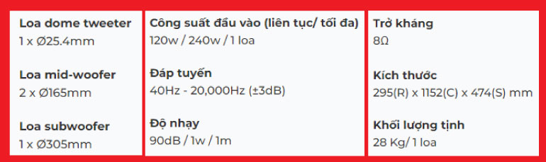 Sở hữu hệ loa thành phần đắt giá cùng thiết kế 3 đường tiếng mượt mà, hòa quyện, thể hiện rõ nét các cung bậc cảm xúc khi thưởng thức âm nhạc hoặc khi karaoke.