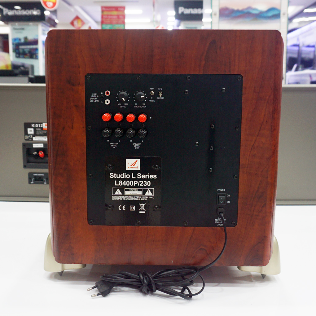 - Loa trầm L8400 được trang bị loa Bass 30cm, với màng loa làm bằng sợi poly mạ nhôm, đây là một chất liệu nhẹ và cứng, giúp tái tạo âm trầm sâu chắc, mang đến hiệu ứng âm thanh bao trùm và bùng nổ.