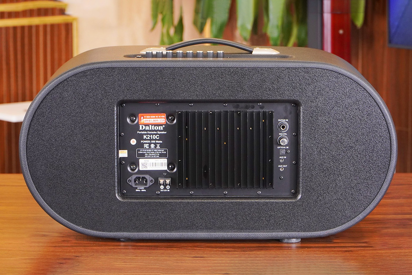 Thiết kế hiện đại và sang trọng của loa karaoke Dalton K210C khiến bất cứ ai cũng phải ấn tượng. Thân loa được làm từ gỗ cao cấp, mang lại âm trầm ấm tự nhiên, tăng độ bền chắc. Bên ngoài, lớp da bọc màu đen huyền bí không chỉ tạo cảm giác mạnh mẽ mà còn toát lên sự tinh tế và sang trọng. Mặt lưới bên trong được làm từ kim loại chắc chắn, giúp giảm hiện tượng rền khi loa hoạt động ở công suất lớn. Lớp lưới nỉ tinh tế được phủ bên ngoài, kết hợp cùng logo Dalton nổi bật, mang đến vẻ đẹp hoàn mỹ cho loa.