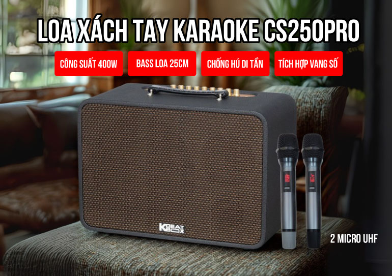 | Phụ kiện | 2 micro UHF (kèm pin), Dây nguồn AC, sách hướng dẫn, phiếu bảo hành |