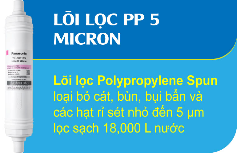 Chức năng: Lõi lọc Panasonic TK-C8F1P5-VN được thiết kế để loại bỏ cát, bùn, bụi bẩn và các hạt rỉ sét nhỏ đến 5 μm. Điều này đảm bảo nguồn nước luôn sạch sẽ và trong lành, phù hợp cho mọi nhu cầu sử dụng.