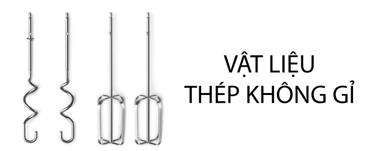 2 cặp que trộn và cặp đánh trứng được làm bằng thép không gỉ đảm bảo độ an toàn khi chế biến