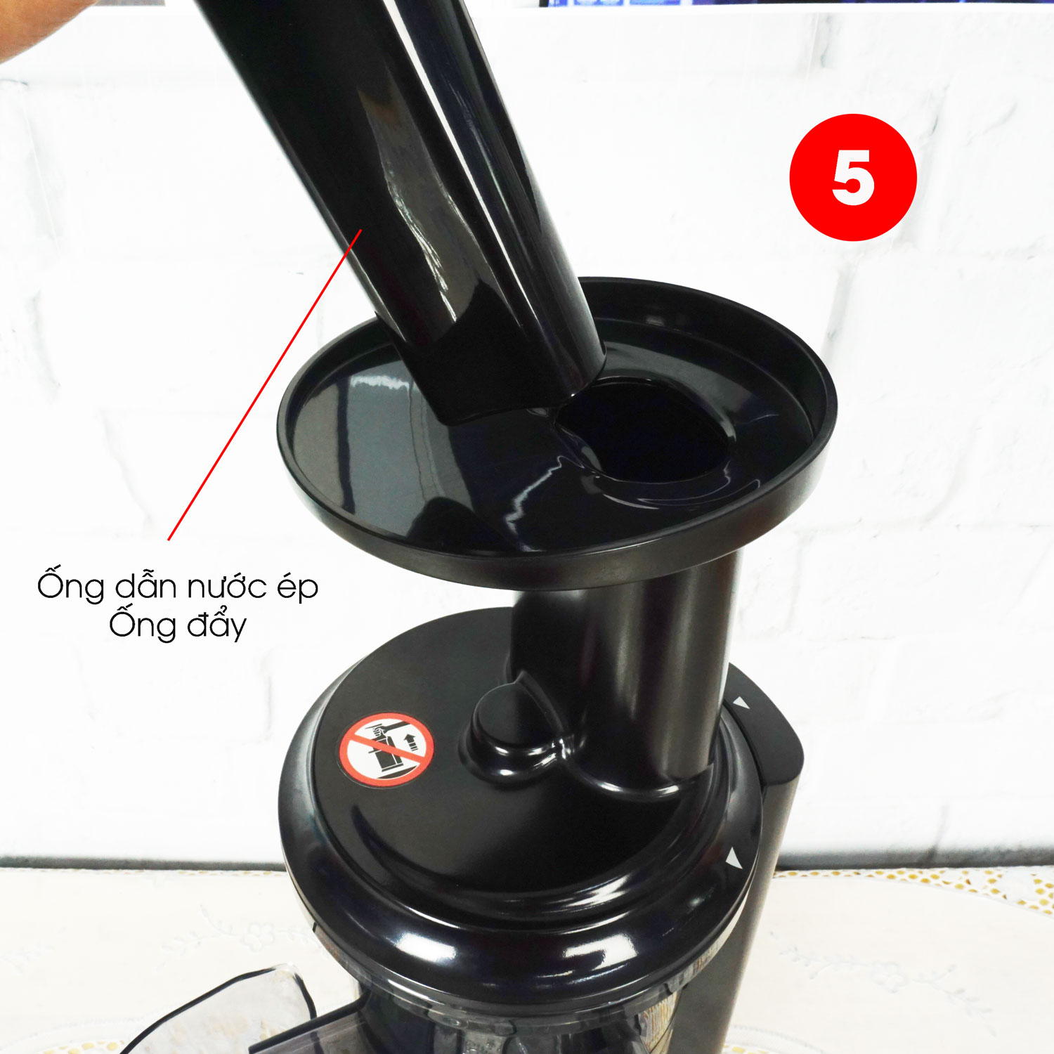 Ống tiếp trái cây dài có thể cho được nhiều hoa quả vào ép, tiết kiệm được thời gian. Ống dẫn nước ép có nắp đậy đảm bảo vệ sinh, ngăn nước ép rơi xuống sau khi ép xong